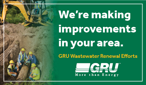Approximately one week before starting the CIPP work, GRU will place yard signs along the roadway where the wastewater pipes will be renewed. The day before your section is renewed, a notice will be placed on your door describing the upcoming work and indicating a 4-hour timeframe that you should reduce your water use.