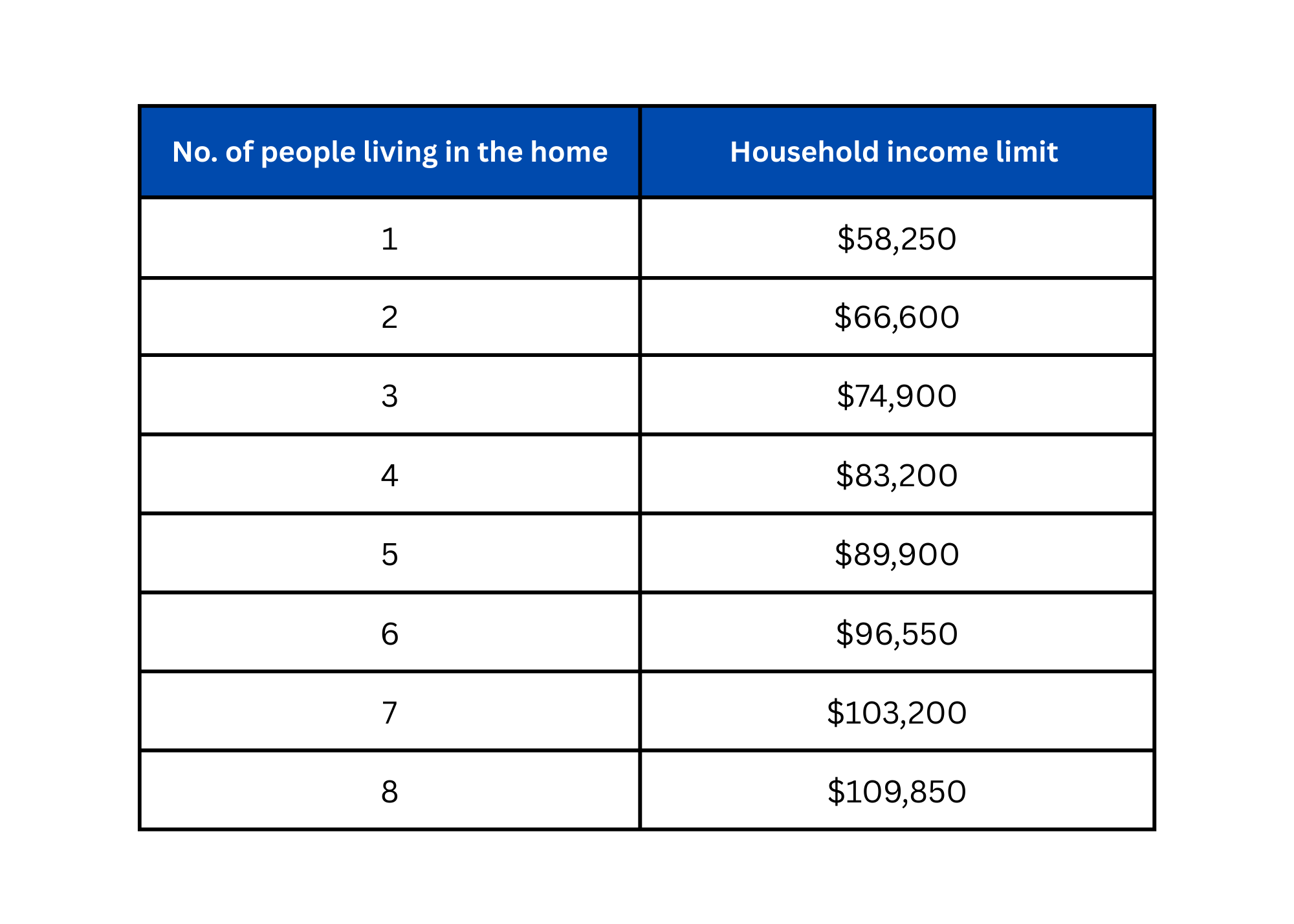 - Customers must show proof that he or she meets current HUD Low-Income Guidelines: (at or below 80% of median family income)
